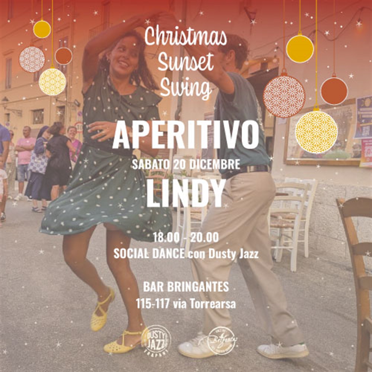 Un aperitivo speciale in pieno mood natalizio: il calore del tramonto d’inverno, drink perfetti per scaldare l’atmosfera e l’inconfondibile fascino dello swing anni ’30, con insegnanti e allievi di Dusty Jazz Trapani.
