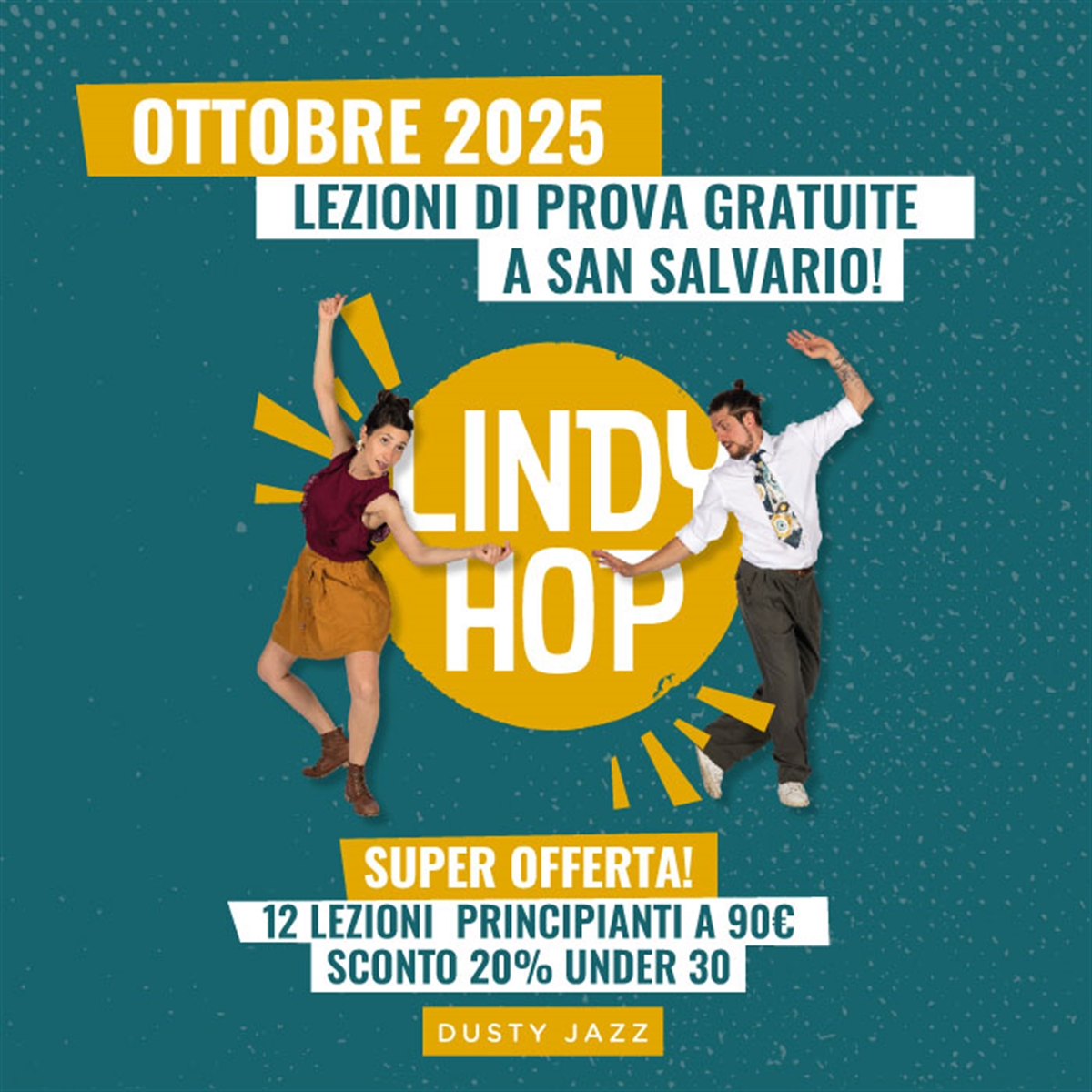 Nel mese di OTTOBRE proponiamo nuove lezioni di prova gratuite di Lindy Hop, il ballo di coppia su musica swing che ha fatto la storia della danza jazz degli anni ’30. Un’occasione ideale per scoprire la nostra comunità come luogo inclusivo e dinamico dove imparare a ballare, divertirsi e socializzare, riscoprendo il fascino autentico dello swing degli anni ’30.